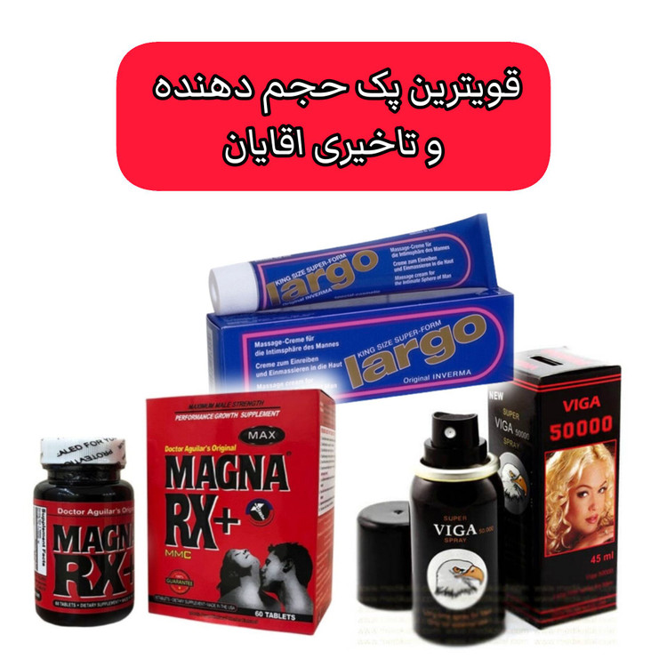 خرید پک مخصوص آقایان (کرم لارگو + قرص مگنارکس + اسپری ویگا ۵۰ هزار) اصل و اورجینال | افزایش توان و اعتمادبهنفس