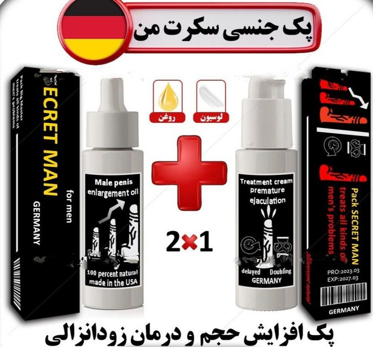 پک جنسی سکرت من SECRET MAN ساخت کشور آلمان میباشد که از دو محصول لوسیون درمان کننده زودانزالی و روغن افزایش حجم سه برابری آلت تناسلی آقایان تشکیل شده است که تاثیر مستقیمی در درمان زودانزالی آقایان ، افزایش حجم آلت تناسلی و همچنین تولید اسپرم دارد. مدت زمانی که فرد این پک را آغاز میکند، یک دوره سه ماهه میباشد تا مشکلات زود انزالی و افزایش حجم آلت تناسلی فرد کاملا درمان شود.این محصول فقط مخصوص اندام خصوصی آقایان میباشد.